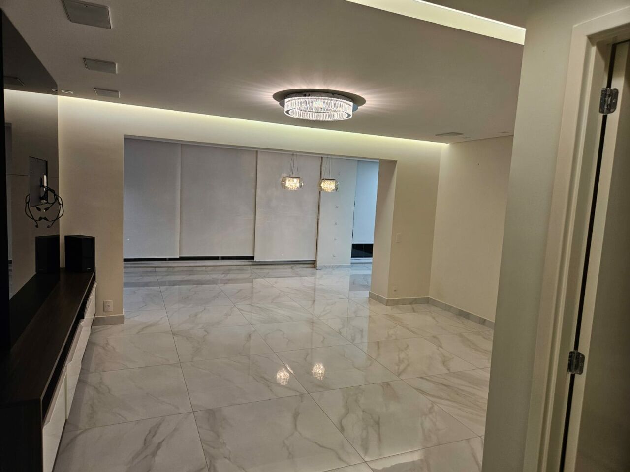 Sala de estar, jantar e TV integradas