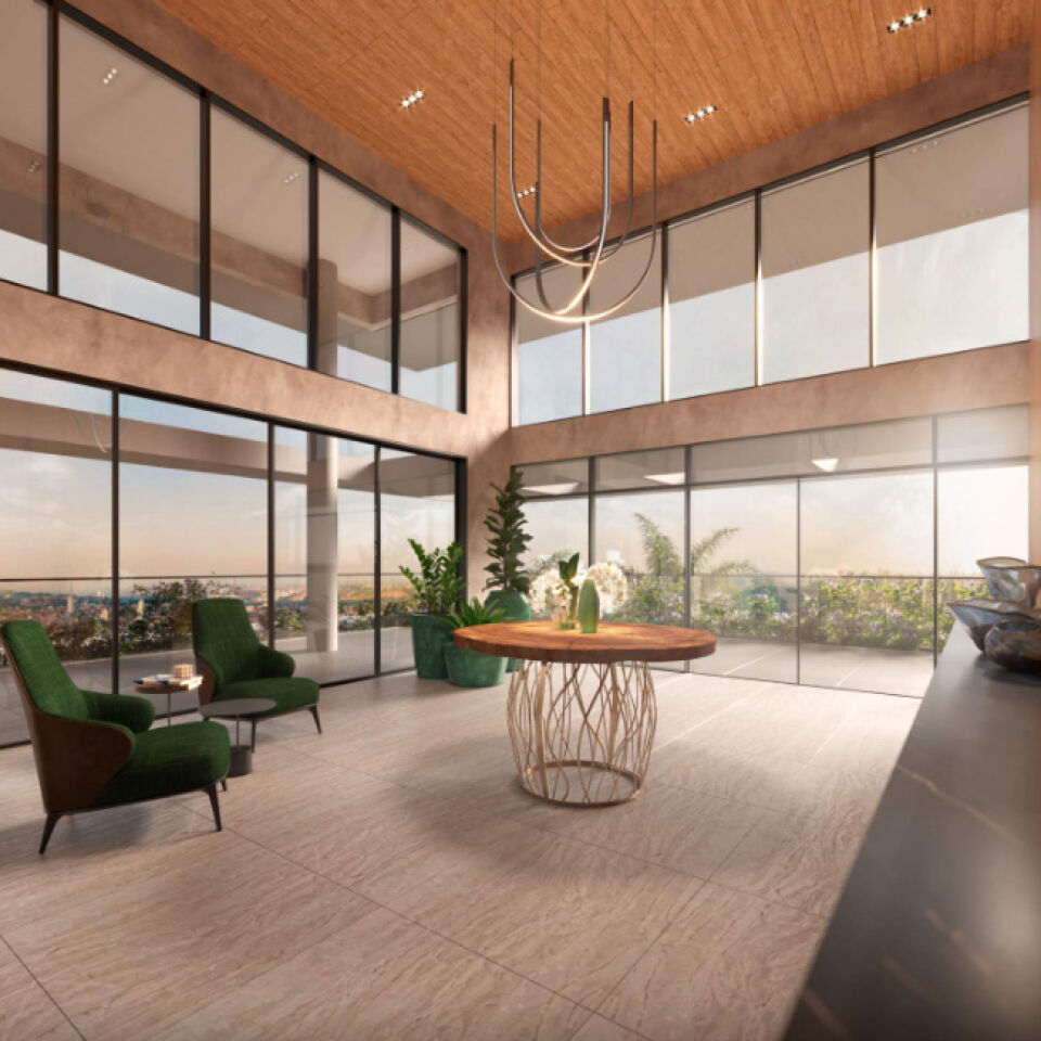 Salão de festas com pé-direito duplo