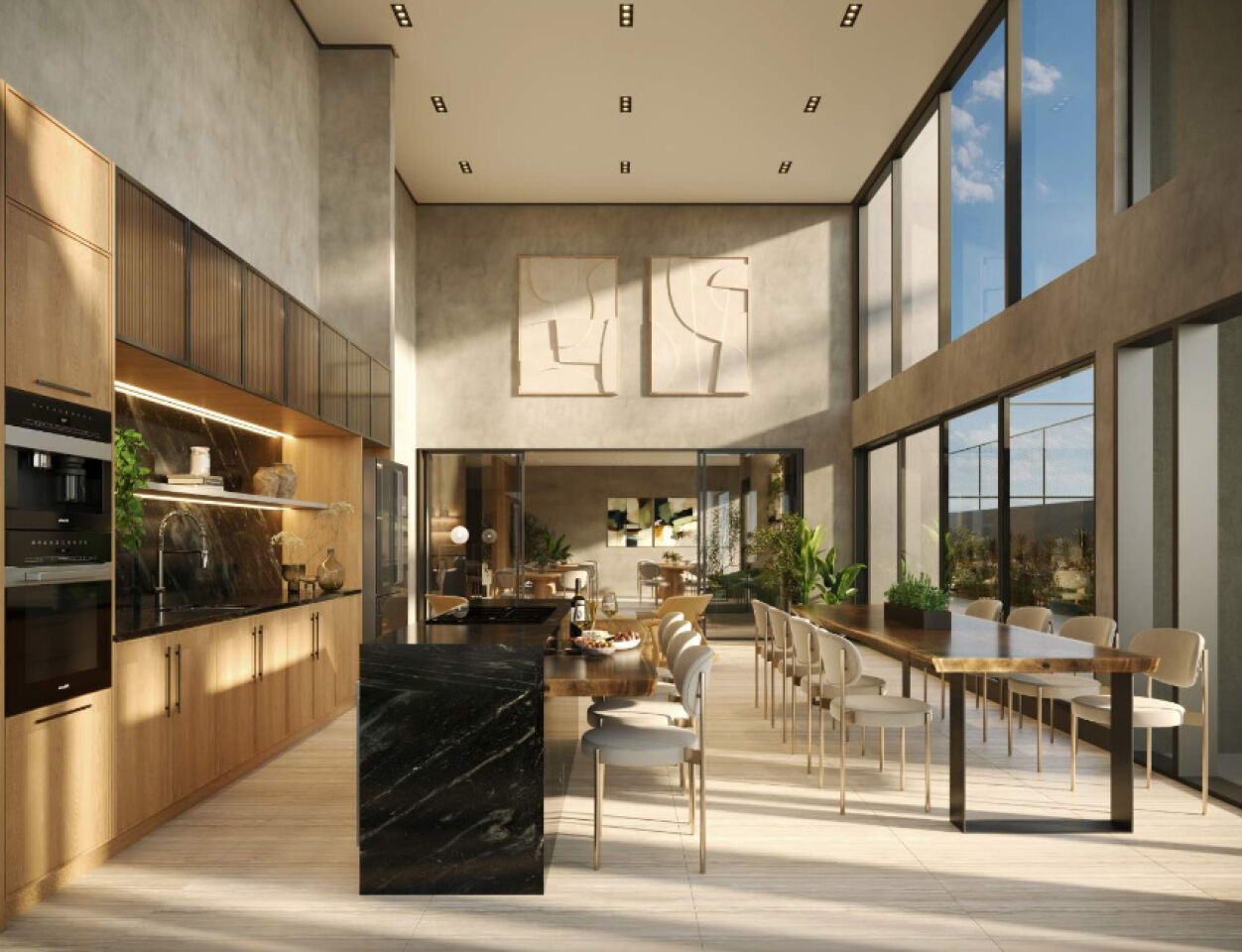 Espaço gourmet com pé-direito duplo (integrável ao salão de festas)